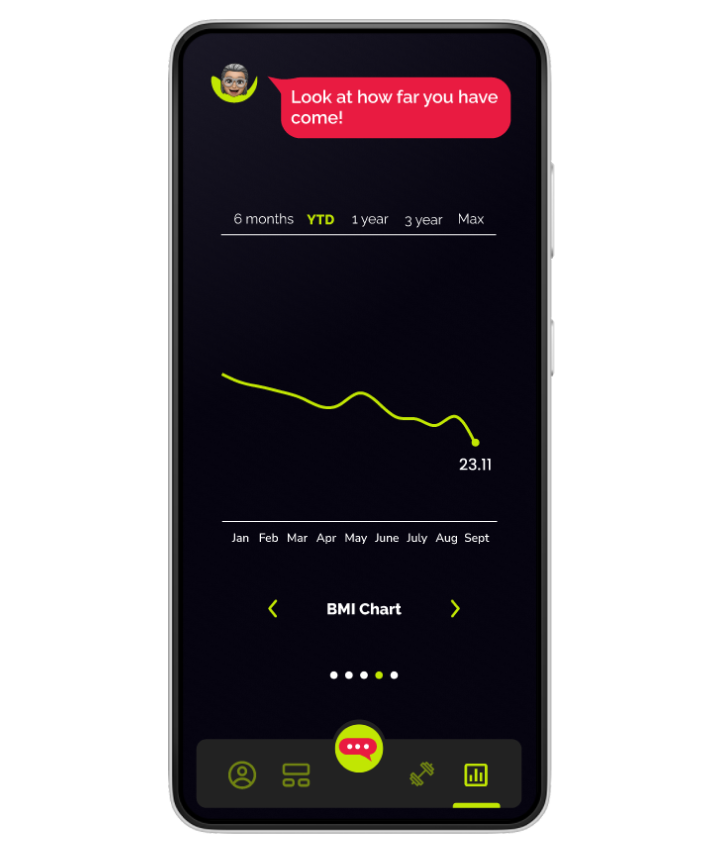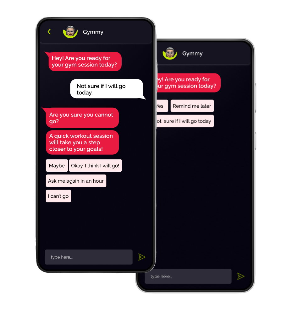 Gymmy, the AI would send regular nudges to remind users of their gym times. Using their GPS location and the data they entered in the previous steps, Gymmy would track the days you have been to your Gym and also ask for your progress after your workout session