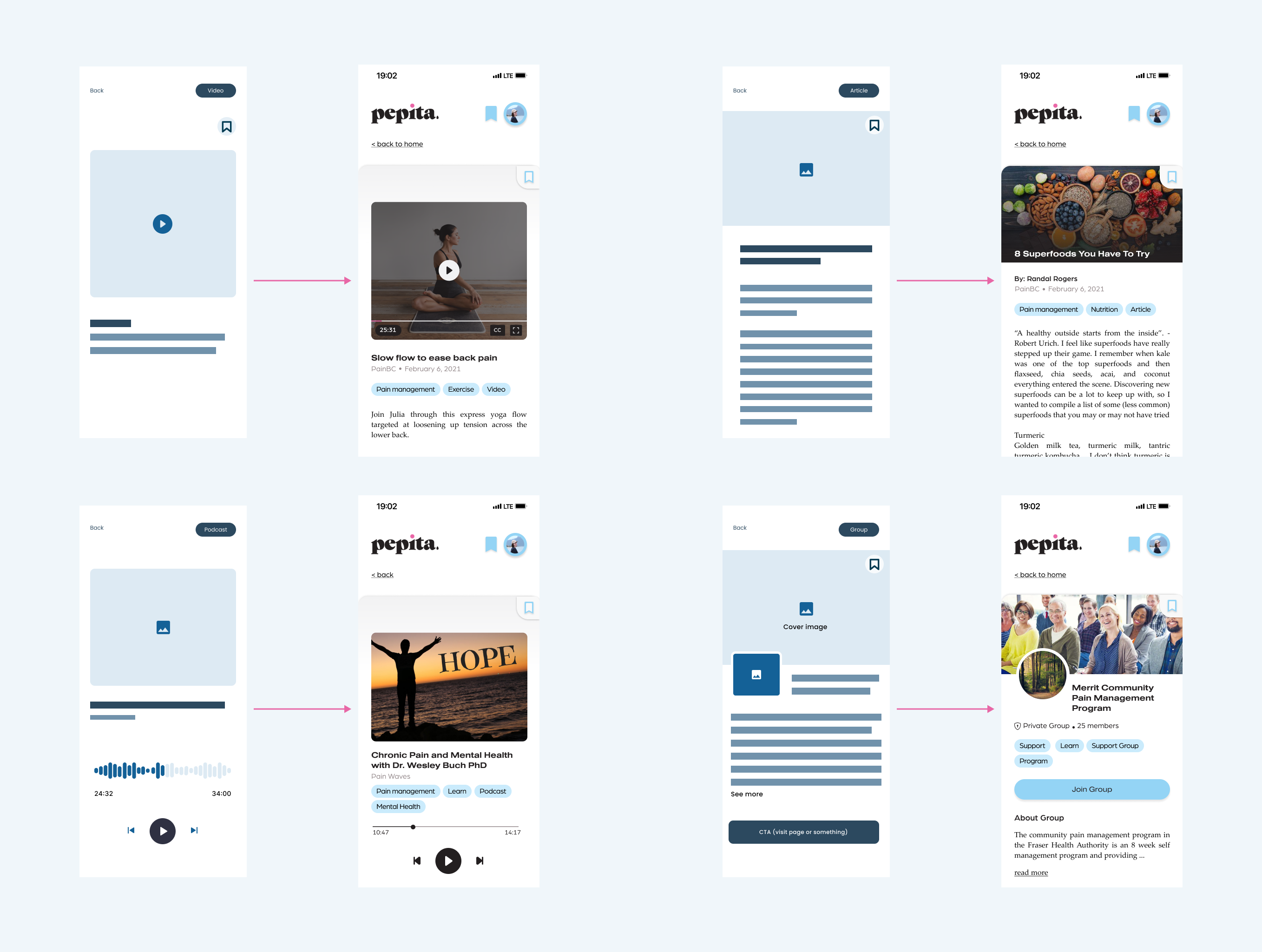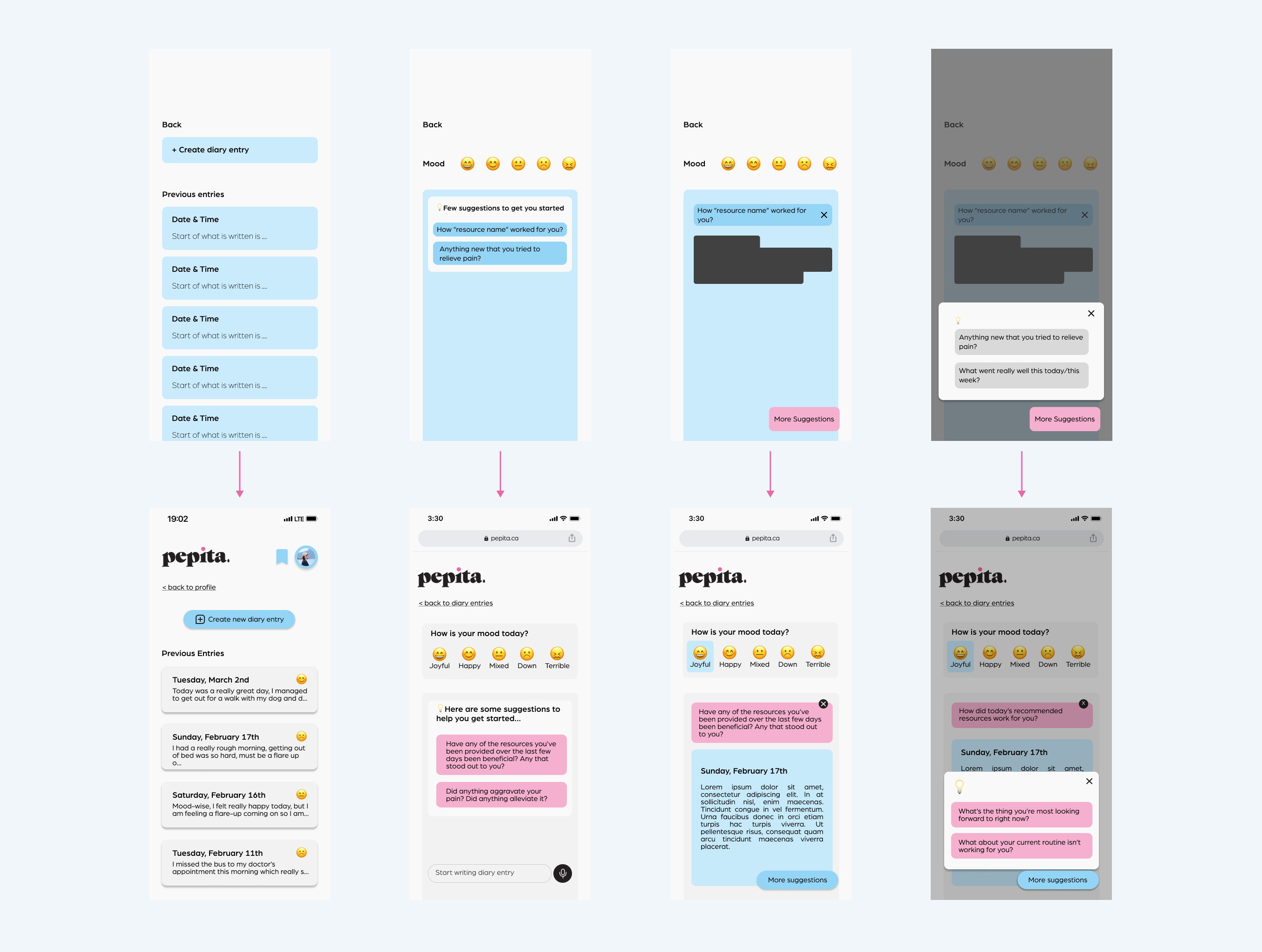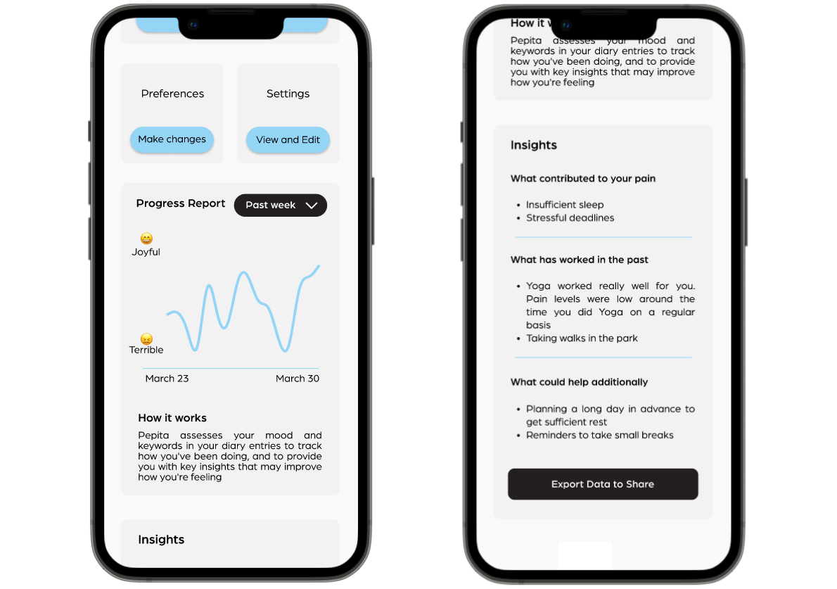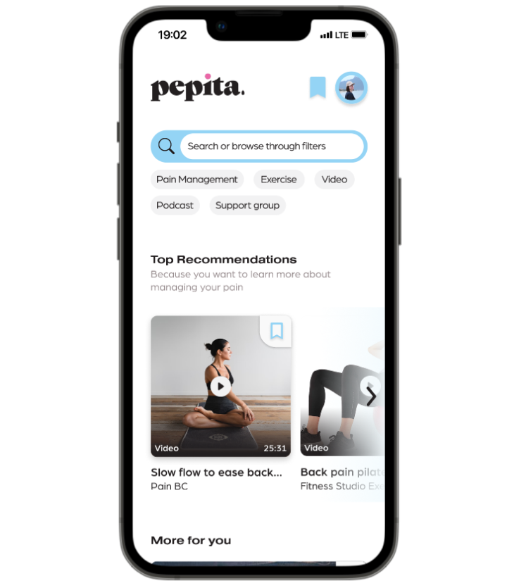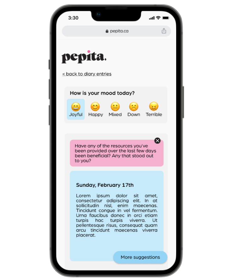 Pepita – is a web-based tool where users can input information about their chronic pain condition and receive curated resources based on their responses. These resources are meant to support the biological, psychological and social aspects of chronic pain.