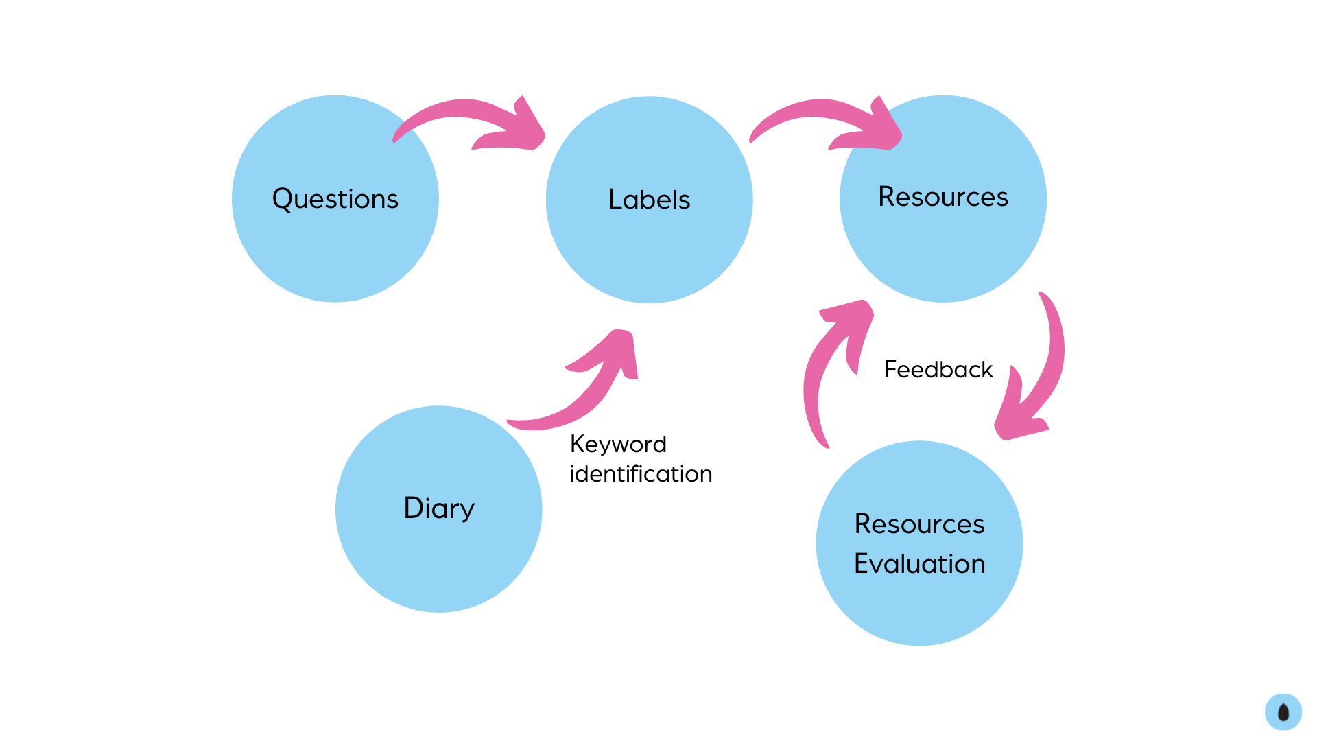 Note: Due to scoping constraints, we were only able to implement and test the "Questions -> Labels -> Resources" part of the logic.